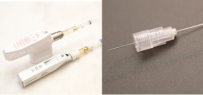 髪の毛と同じ程度の細さの極細針(33ゲージ※0.2mm)や、さらに細い針(32ゲージ)など、3種類の太さの針を採用