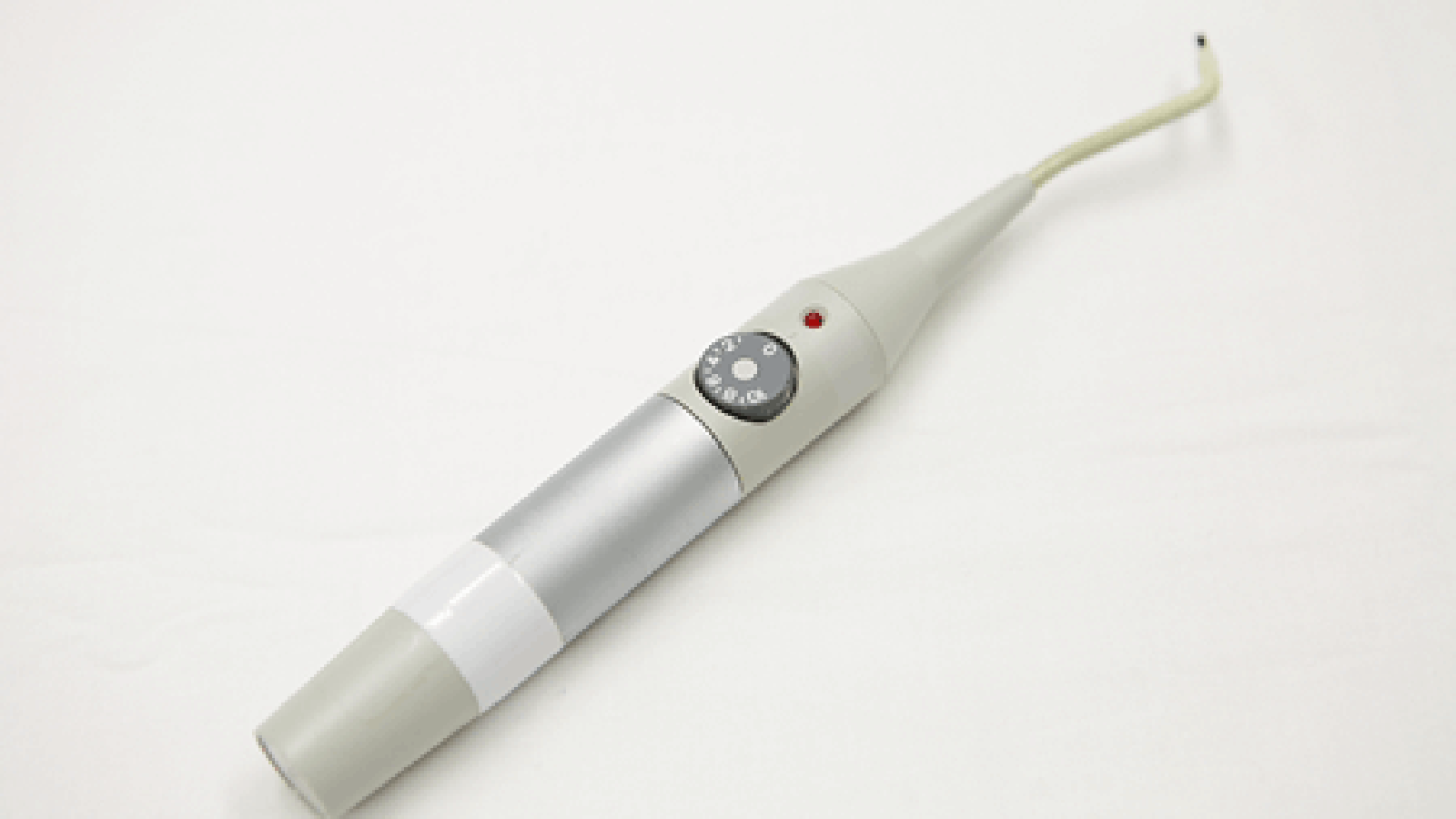 電気歯髄診断器、デントテスターは、微弱な電気を流すことによって、知覚の有無を調べ、歯の神経が生きているか死んでいるかを客観的に正確に判断することができます。