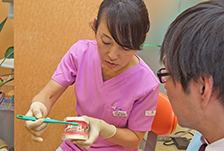 歯肉マッサージは指で歯茎全体をマッサージを行います。歯茎の引き締め、歯周病の予防につながります。また唾液線を刺激することができるので、唾液の出をよくし、虫歯予防や口臭予防への効果も期待できます。